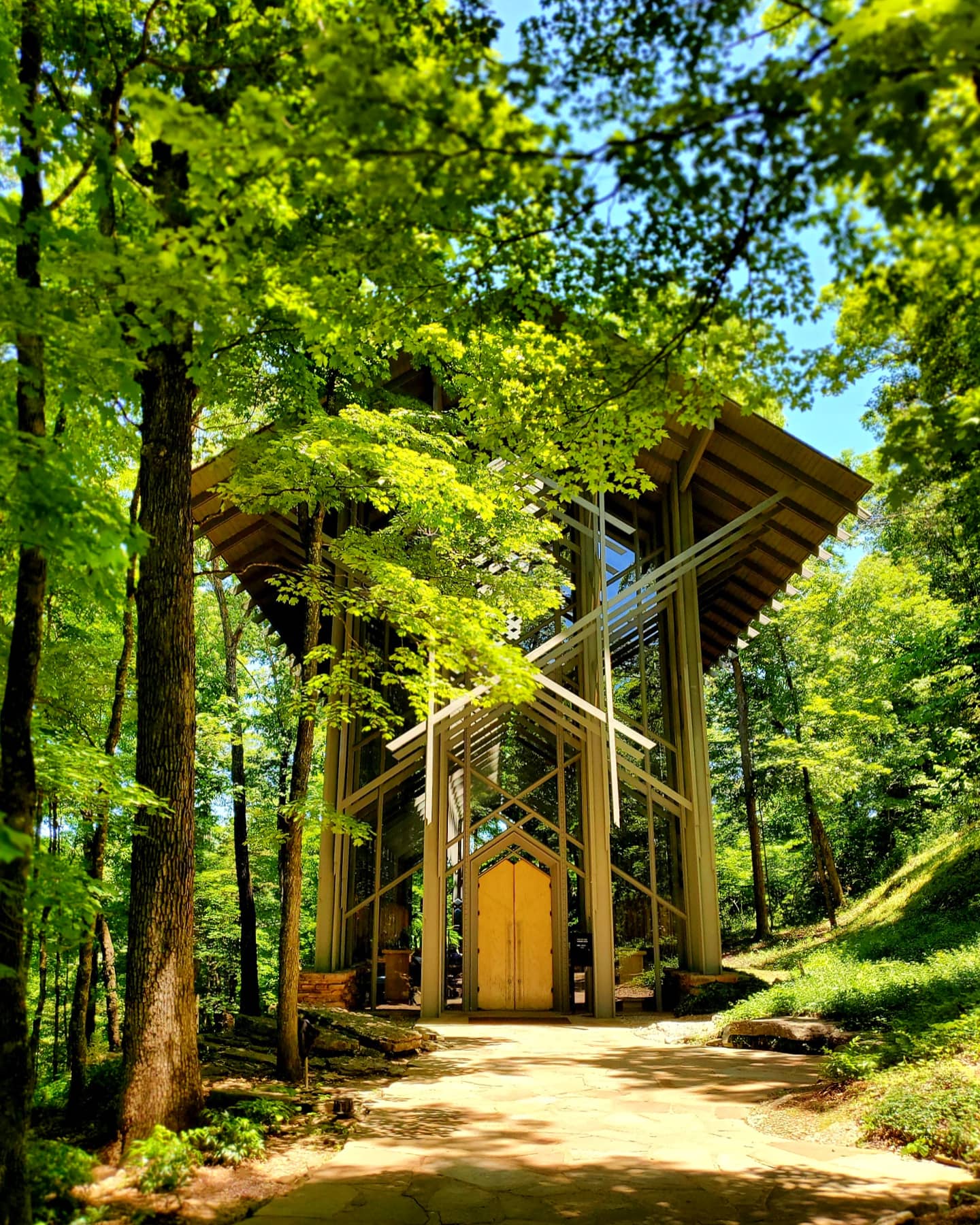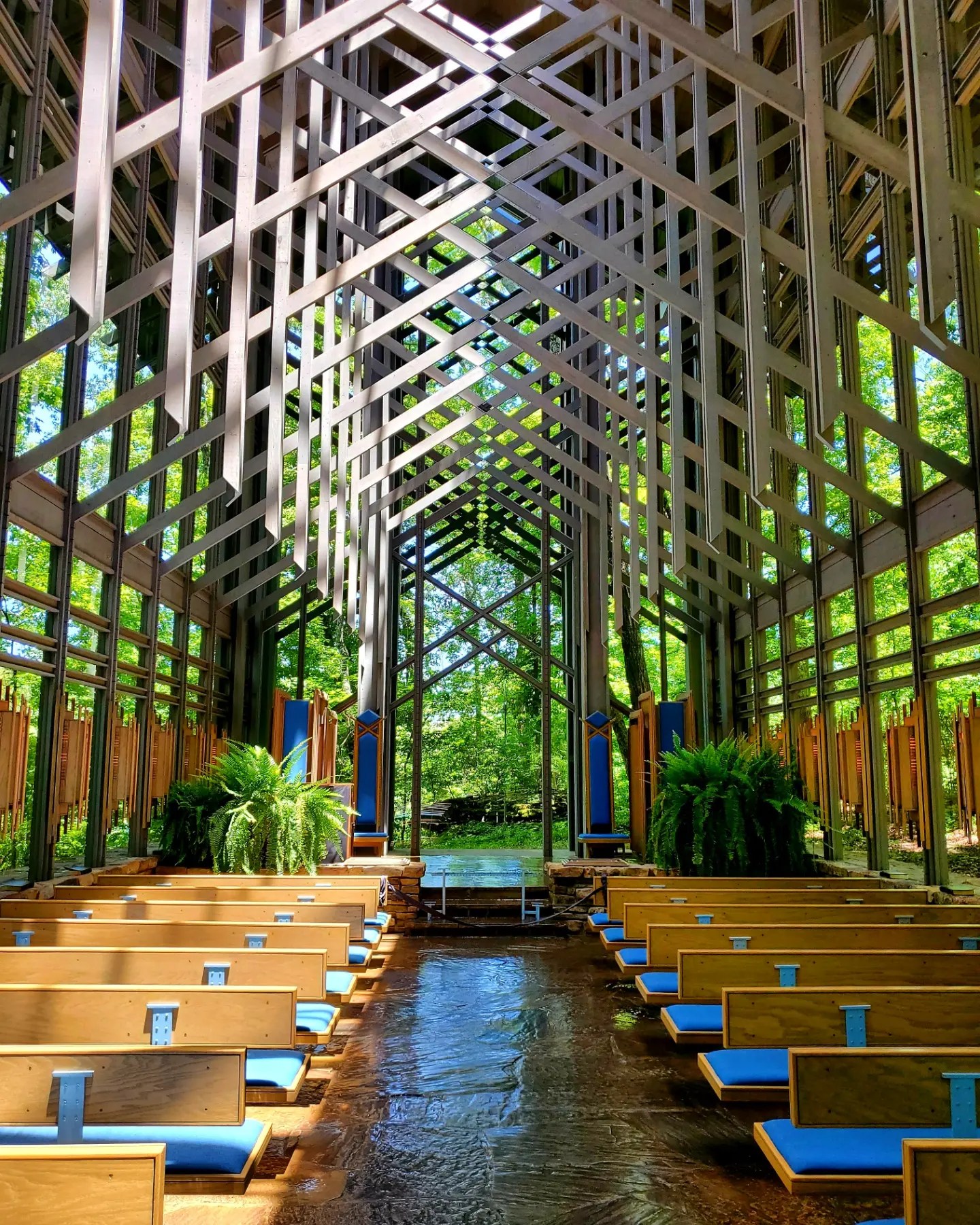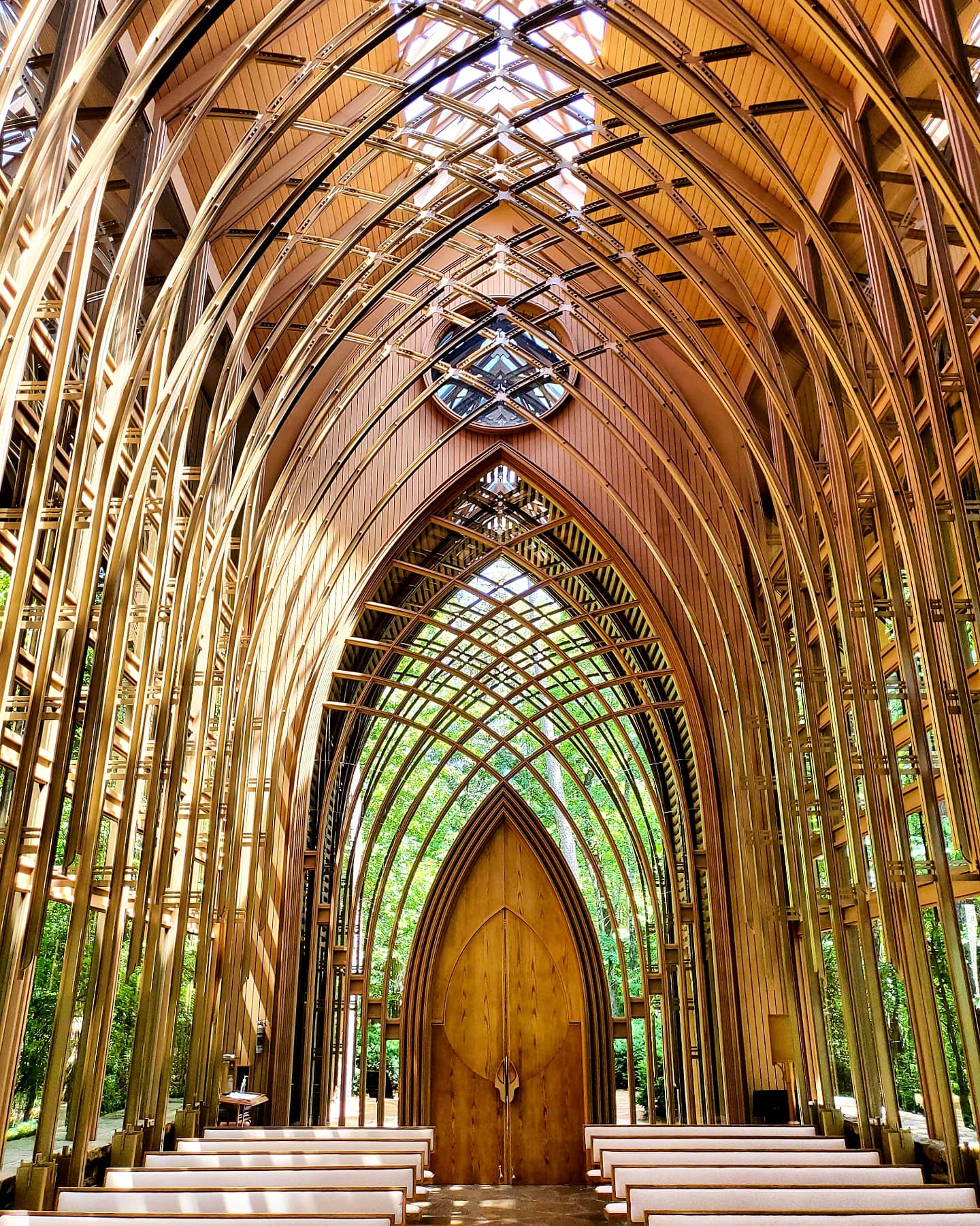 Mildred B. Cooper Memorial Chapel in Bella Vista has 15 50-foot tall arches, with 3 or 4 gothic arches inside each one.